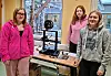 Ida Svedberg, Hanna Lalander och Amanda Hammarfjäll Larsson visar upp den nyinköpta 3D skrivaren och en snögubbe som elever fått prova att skriva ut.