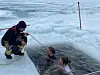 Fjällsäkerhet3.jpg: Elin Lundmark och Nova Stålnacke fick prova på att bada isvak med instruktioner från Niklas Edbjörk.