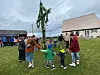 Ca 10 grader i luften, lite duggregn och en isande nordvästan hindrade dock inte stångresning och det traditionella dansandet kring midsommarstången.