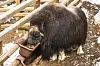 Myskoxtjuren Härje i hägnet i västra Härjedalen fick vandra vidare under tisdagen. Denna bild är tagen vid JT:s besök på Myskoxcentrum i Härjedalen i maj 2020.