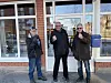 Harald Eriksson, ordförande PRO, Göran Bergström, före detta kommunalråd och Staffan Oscarsson, ordförande SPF, utanför Swedbanks stängda kontor. De skriver i ett medborgarförslag att kommunen måste prata med Swedbank om bättre öppettider eller byta bank till Handelsbanken.