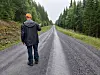 Vid fototillfället regnade det, men Lennart visar hur sikten var obefintlig hela sträckan på grund av dammbildning