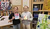 Nora Berg, 9 år och Mira Frisk 10 år visade upp sina fina julkort. De har varit med hela hösten. "Det har varit kul, att prova grafik var helt nytt för oss". Foto Sonja Björklund