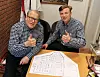 Kurt och Carl Johnsson tittar på ritningen som visar hur ICA Svenstavik kommer att se ut när utbyggnaden är klar.