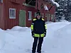 Anders Nääs från Ovikens travklubb vid det inrasade stalltaket.