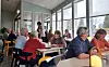 Denna torsdag är det Riksförbundet HjärtLung Berg som har ansvaret. Ett femtiotal besökare fyller caféet i föreningshuset när tre av föreningens medlemmar fixar dagens smörgåsar och fikabröd.