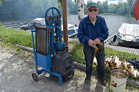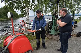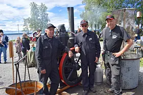 HACKÅS (JT) Svart rök steg mot himlen och motorerna dunkade handfast vid Storsjöns strand när ortens Jerngäng bjöd in till visning av tändkulemotorer på lördagen. Se tv-inslag nedan.