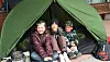 Astrid Amundsson - Wagenius, Malou och Eiwe Kårwik passade på att testa tältet som var uppsatt av Friluftslånet. De såg ut att trivas ypperligt.