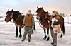 Julia Eriksson med Peppe och Anette Persson med Tjarli stod färdiga för att koppla på slädarna. Är det julmys på forböndernas Pålletorp hör slädturer självklart till.