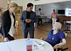Under besöket på Tallgläntan i Hackås fick socialförsäkringsministern och Kärngard en pratstund med en av de boende, Märta Hansen.