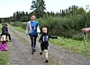 Klas Göransson, 5 år från Mo tycker om att springa. Här springer han i mål tillsammans med Klara Busz.