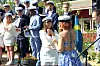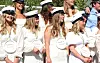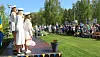 Det var den första dagen med riktig sommarkänsla , något som passade alldeles utmärkt för de tunnklädda studenterna, inte minst alla tjejer i sina vita klänningar. På gräsmattan väntade alla släktingar med traditionella attiraljer såsom plakat, blommor, champagne och nallebjörnar.