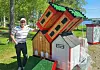 John Olof Mannberg visar de hus som ska ut på den nya minigolfbanan innan premiären i helgen. "Man får spela för halva priset hela invigningshelgen".