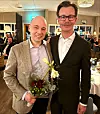 Till vänster: Årets företagare blev Markus Rödin på Rödins Trä. Till höger syns Peter Dahlbäck, ordförande för Företagarna i Berg.