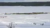 Det är de här odlingskassarna vid Hoverberg som misstänks läcka regnbågar. Här har hela vintern pimpelfiskare gjort stora fångster av regnbåge.