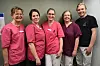 De tar emot djur vid Veterinärkliniken på söder. Från vänster: Helena Hedenström, Emma Bodin, Ingrid Lundqvist, Inger Karlsson och William Strömberg.