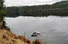 Ägaren lyckades få ut sin hund ur bilen som hade rullat ner i Vattudalen innan strömmen drog ut bilen på fyra meters djup. Foto: Kenth Larsson