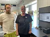 Ulrika och Fredrik Edholm framför den extra snabbkassan som man kan använda både natt och dag.