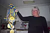 Ellen Jonsson, tidigare Nordisk Mästare i pimpelfiske, visar hennes och maken Lennarts medaljskörd.