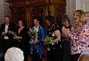 Heliane Klingelhöfer-Grundel (klädd i blått), Sörbygden, tog emot diplomet för Årets serviceföretag.