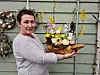 Floristen Kirsten Lüdicke i Bräcke håller upp sin kreation.
