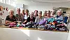 Några av PRO-kvinnorna framför de handarbeten som snart ska överlämnas till krigets offer i Ukraina.