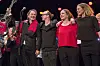 Tomas Ledin, Jonas Hagström, Tove Thofelt (körledare) och Rosmari Hagström. I bakgrunden The Rockin´ Pots i samband med att Tomas Ledin spelade med kören på gamla Teatern den 20 december 2017. Foto: Johannes Adolfsson