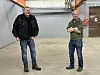 Bernt Lindman, till vänster, och Anders Mårtensson, till höger, står på den plats som är tilldelad den första maskinen som väntas vara på plats i mars. Här ska engångsförpackningar i cellulosafiber tillverkas för internationell transport. – Vi vill lyfta byn, säger Anders.