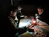 I skenet från fotogenlyktor diskuterade smågrupper hur man bäst hanterar ett elavbrott.