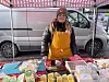 Över området hörs mjuk Blues från lokala Bottleneck John. Han är bokad att spela många timmar under årets marknad, som nyttjar Badhusparken mer än vad man gjort tidigare år.