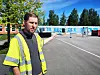Olle Napreeff, Fastighet på Östersunds kommun är övergripande projektledare och säger att skolan kan öppna till skolstarten. På bilden visar han modulerna som används till bygget. Foto: Trampolin PR