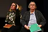 Sara Kjellsdotter (s) och Karin Holmquist (m) på scenen vid ett dialogmöte (arkiv)