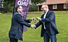 Anders Wennerberg, kommundirektör, överlämnar den symboliska nyckeln till Grytans läger till Fortifikationsverkets regionchef Håkan Tano. Redan till nästa år ska värnpliktiga utbildas på området.