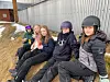 Ida-Li Östling, Astrid Sköldberg, Karin Myhr, Nanna Eriksson och Isa Långström-Bodén sitter och solar sig innan tävlingen.