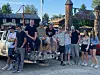 parkeringen utanför hembygdsgården hörs glada skratt. Det är