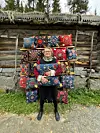 Karin Blomkvist med brudkuddar i bakgrunden. Foto: Privat.