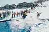 Tidigare på dagen skulle Ravinen Slush Showdown äga rum, men det var för kallt och för lite slask så den flyttades till nästa år istället. Tävlingen Ramisplasket går ut på att ta sig över en stor vattenpöl i slutet av slalombacken utan att bli blöt. Men det var lättare sagt än gjort, men de många vurporna gjorde charmen på tävlingen.