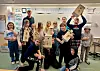 Carina Sörlin och Mats Degermark med glada och kreativa elever och deras fågelholkar.