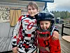 Holger Walter, 6 år, och Nils Persson, 11 år. Båda tycker att det är roligt att köra cross men även att träffa så många kompisar.