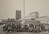 Industrialismen fick även sitt genombrott i Jämtland. Här arbetare vid Hissmofors sulfitfabrik cirka 1905.