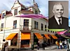Framgångarna för Jämtlands Skogsägareförening gjorde att de vid årsskiftet 1942/43 kunde flytta in i nya kontorslokaler på Prästgatan 40 i Östersund. Otto Sahlin fick hörnrummet med balkong på bilden. I dag är det Storsjöyrans kansli som disponerar lokalerna. Infälld bild av Otto Sahlin. Foto: Torbjörn Aronsson (montage)