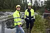 Jämtkrafts vd Ylva Andersson och projektledaren Johan Kjellgren under rivningen Långforsens kraftverk. Foto: Arkivbild.