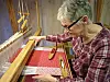 Berit Tenggren arbetar med en vacker löparväv i daldräll.