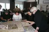 Full aktivitet vid borden under pusselläggningen.