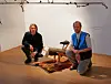 Petter och Bernd vid en av skulpturerna, i taket hänger Nyckelkronan.