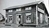 I Järpen började den kooperativa verksamheten med delning av livsmedel från järnvägsvagn. Snabbt startade man egen butik. Här butiken på Skansvägen 52 i Järpen. I dörröppningen chefen Levin Andersson under åren 1911-15. Han blev chef för Östersundsföreningen 1915-1928. Därefter vidare till tjänst i Kooperativa Förbundet. Foto: Ur Konsums fotoalbum