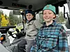 Kusinerna Ellis Wolvzynski och Axel Wolczynski fick provköra en riktig traktor.
