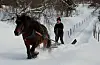 Johanna plogar snö med häst i Tulleråsen