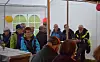 Ett fyrtiotal personer hade samlats runt borden i det stora partytältet och de firade bland annat tvåårsjubileet av asfalteringen av vägen mellan Änge och Valne. De olika uteaktiviteterna hade dock fått ställas in på grund av vädret, men tipspromenaden kunde hållas i det stora partytältet istället.