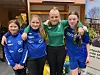 Amelia Bergvall i grönt är målvakt för IFK Strömsund, med sina yngre lagkamrater Molly Book, Klara Elverum och Ella Elverum-Zackrisson.